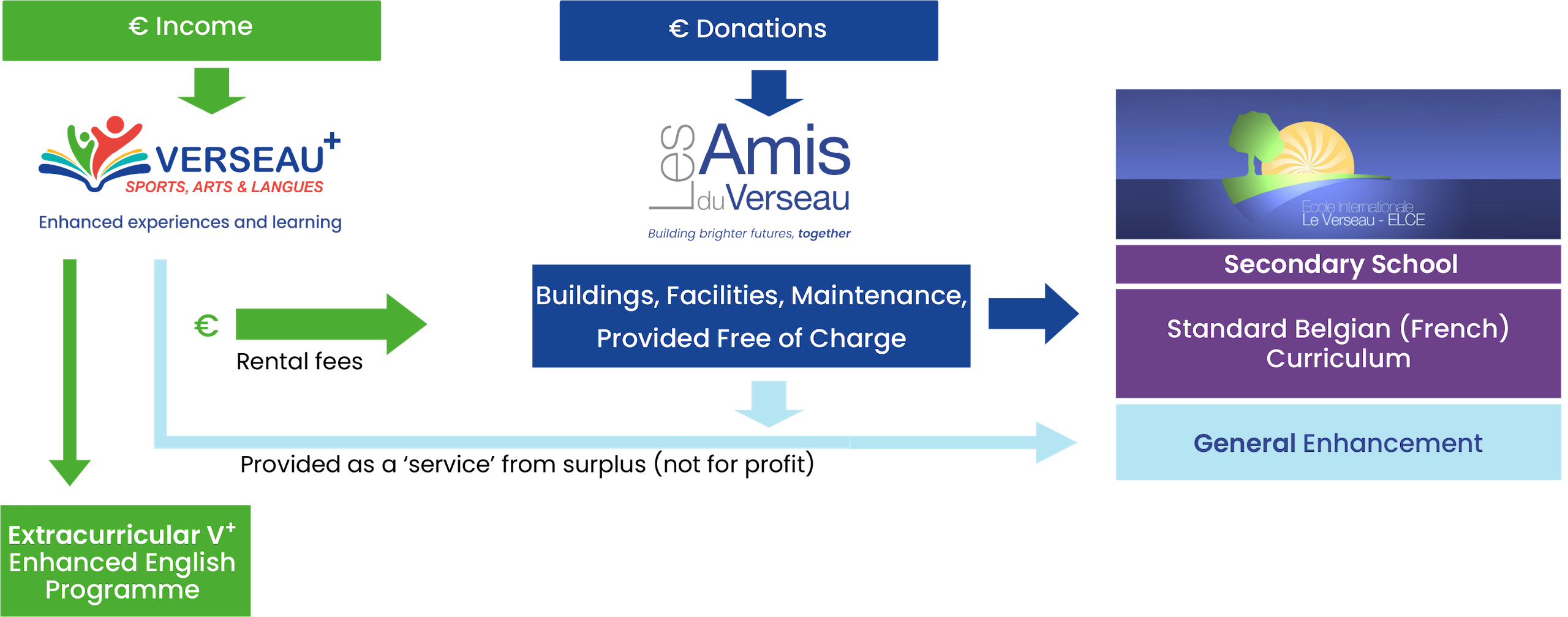 Contributions to Les Amis du Verseau, asbl (not-for-profit association) are used for enhancing the learning experience and environment for pupils and used to support the activities of VSAL in providing the General Enhancements for Secondary School.